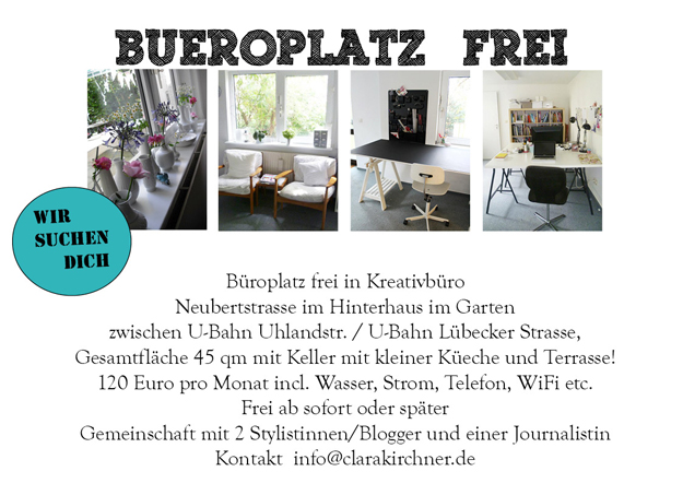 Ihr Lieben! heute mal etwas out of topic. Es gibt in Hamburg eine kleine Oase.. unser "Biiiiro". Alles ist vor 4 Jahren entstanden, als meine Freundin und Kollegin Hanna und ich auf einem Spaziergang einen Aushang entdeckten. Für ein kleines Büro mitten in einem Hinterhaus in einem Garten ...