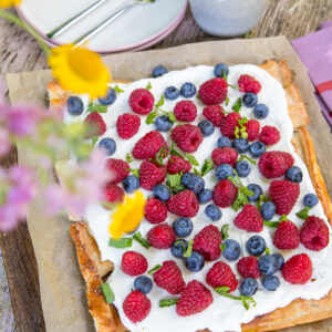 Und dieser leckere Kuchen ist auf Blätterteig Basis. Kombiniert mit einer leckeren zitronigen Creme mit Cheesecake Geschmack und da drauf dann ein paar Beeren. Perfekt für einen Sonntag Nachmittag. Das Rezept hab ich Euch natürlich mitgebracht.