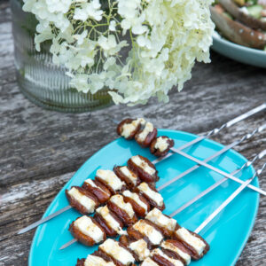 Falls ihr keine Datteln mögt, funktioniert das Ganze auch mit getrockneten Feigen oder Aprikosen. Und wer es besonders würzig mag, wickelt die gefüllten Datteln vor dem Grillen noch in eine dünne Scheibe Bacon ein.