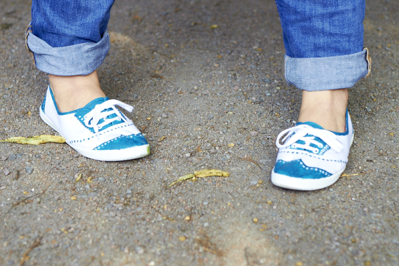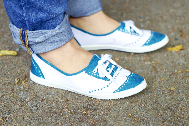 hier ein wunderbarer DIY Tip, wie man aus laaaaaangweiligen weißen Einheitstretern herrlich individuelle Freizeitsneaker zaubern kann.