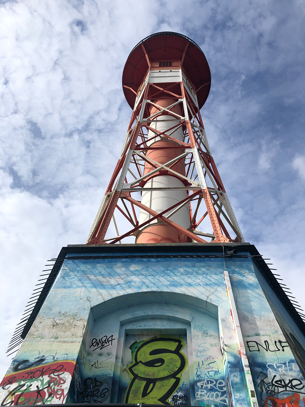 Betritt man vom Parkplatz aus den Strand fällt als erstes eine Gruppe von knorrigen alten Linden ins Auge. Im Sommer bilden sie ein dichtes Blätterdach und markieren die ehemalige Sommerterrasse des Fährhauses Wittenbergen. Einst war der Elbstrand in Wittenbergen für die Hamburger ein echtes Ausflugsziel zum Baden mit Strandkörben und einem tollen Restaurant. Blickt man weiter nach rechts in Richtung Elbemündung fällt sofort der rot-weiß-gestreifte Leuchtturm ins Auge. Er sorgt nochmal für das richtig maritime Flair. Eine Besichtigung ist nach Terminabsprache unbedingt zu empfehlen. Von der Plattform hat man den perfekten „Drei-Länder-Blick“ nach Schleswig-Holstein, nach Hamburg in den Hamburger Hafen und rüber auf die Elbinsel „Neßsand“, die zu Niedersachsen gehört.