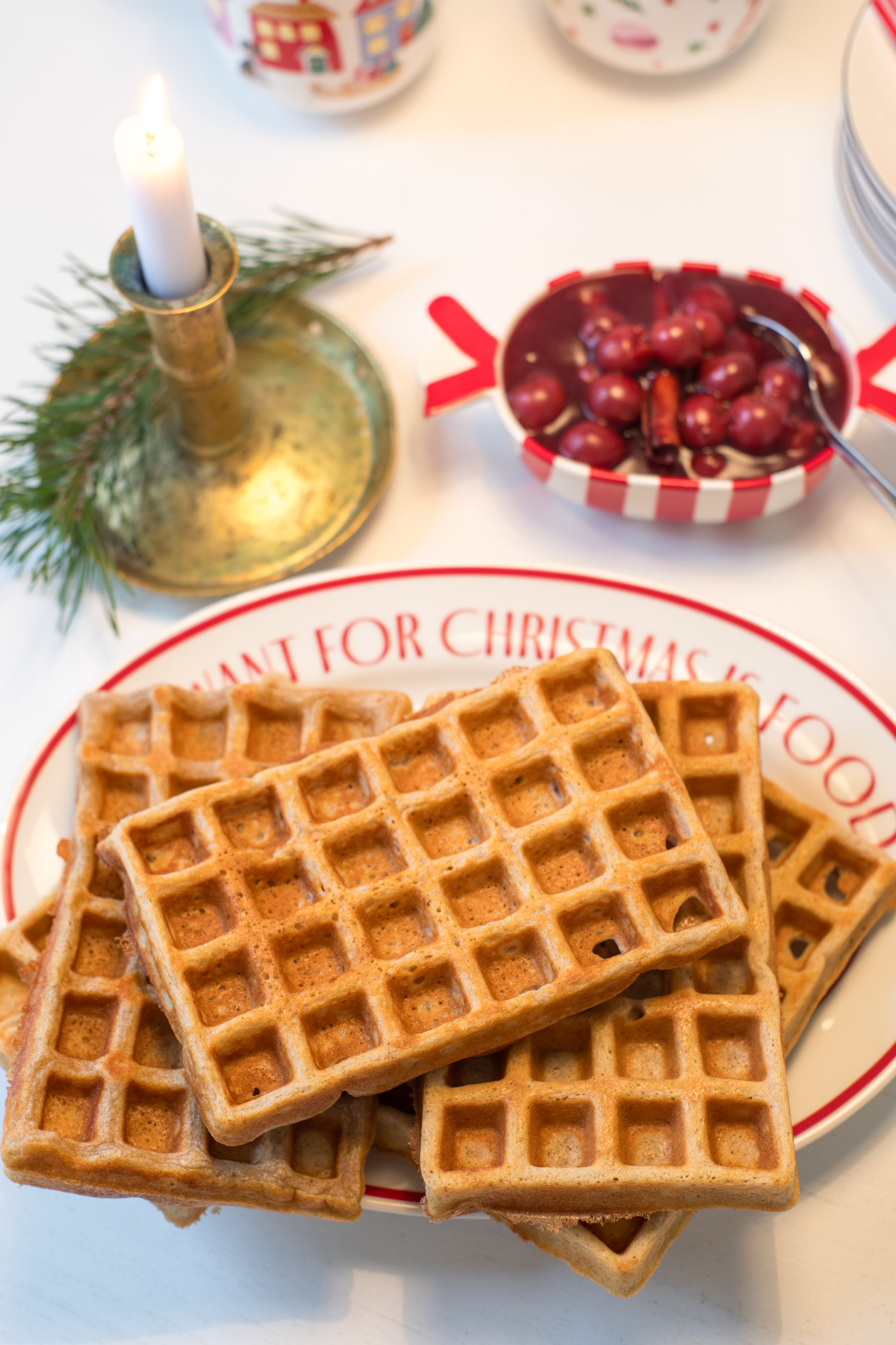 Saftige Lebkuchenwaffeln mit warmen, weihnachtlichen Kirschen – ein schnelles Winterrezept für gemütliche Advents- und Weihnachtstage!