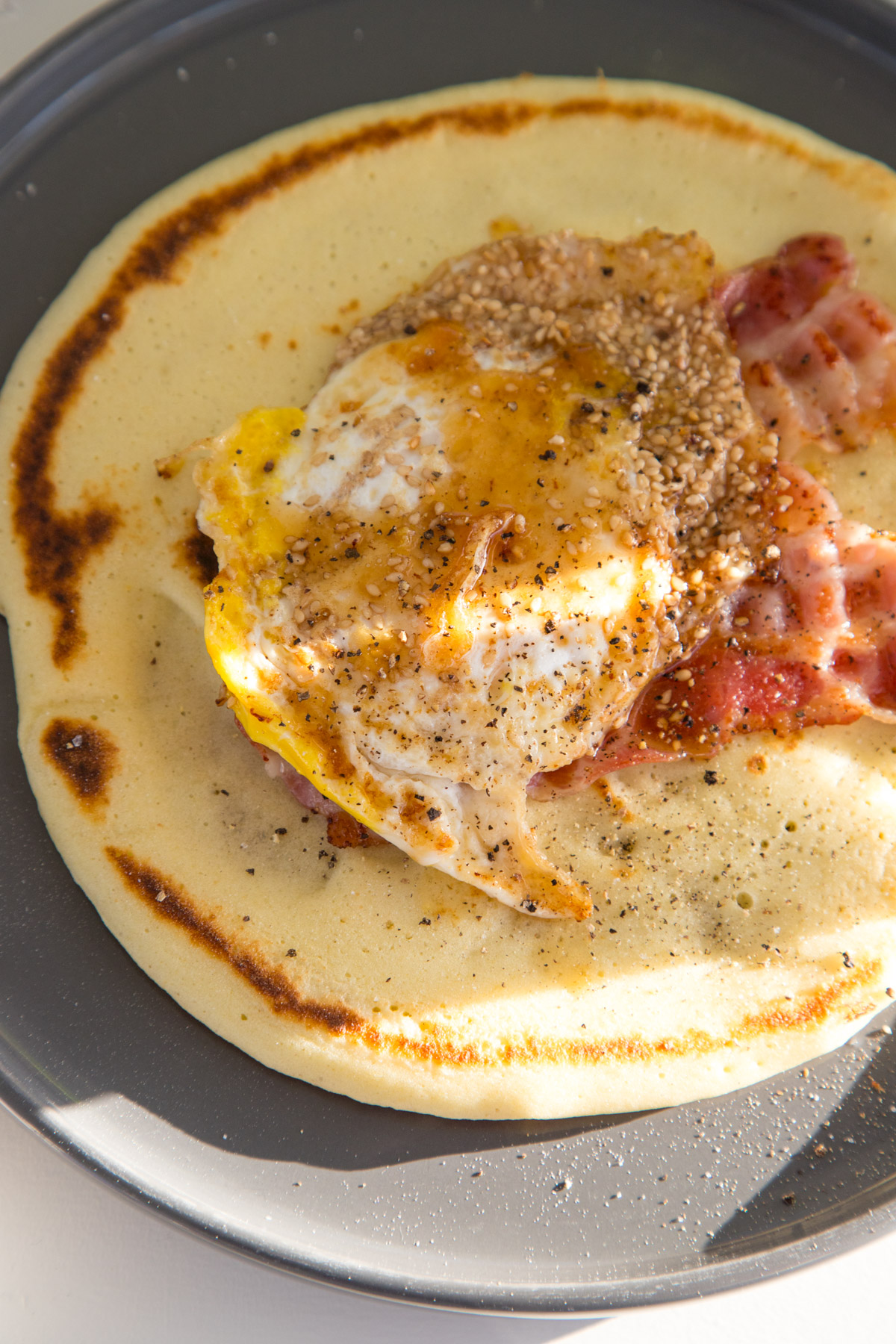 · 16.05.25Herzhafte Pfannkuchen zum Frühstück: mit Honig-Sesam-Ei und knusprigem Bacon – ein kreativer Start in den Tag, der süß und salzig perfekt vereint!