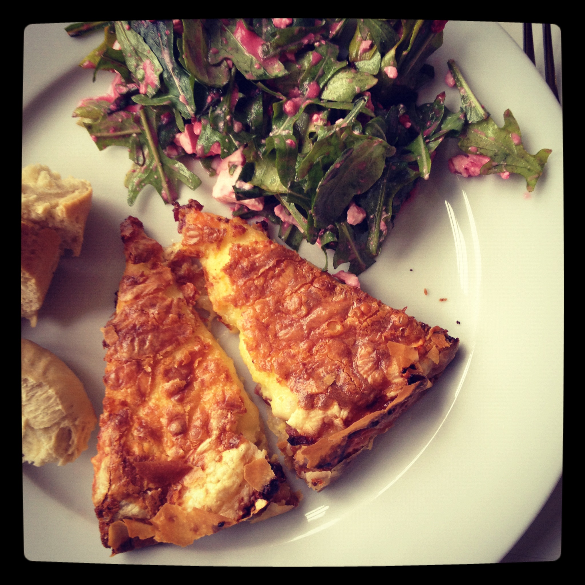 Quiche Lorraine mit Salat mit Himbeerdressing!