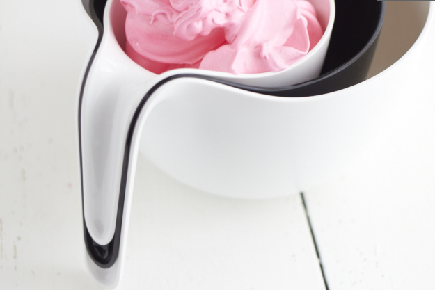 In meinem Küchenschrank ist ein wunderbares neues Schüsselset gelandet und ich wollte diese Exemplare mit etwas tollem einweihen. Kein schnöder Hefeteig oder Rührteig… es sollten pinke Baisers werden. In diese § Schüsseln hab ich mich schon in Frankfurt auf der Messe direkt verliebt. Hübsch und vor allem formschön kommt das Dreierset von Koziol nach einem Entwurf Cairn Young daher. Und ich soetwas!!! Cairn Young hat als Industriedesigner übrigens mit viele tolle Entwürfe für Koziol, Auerhahn, WMF, Rosenthal und Driade einen Namen gemacht.