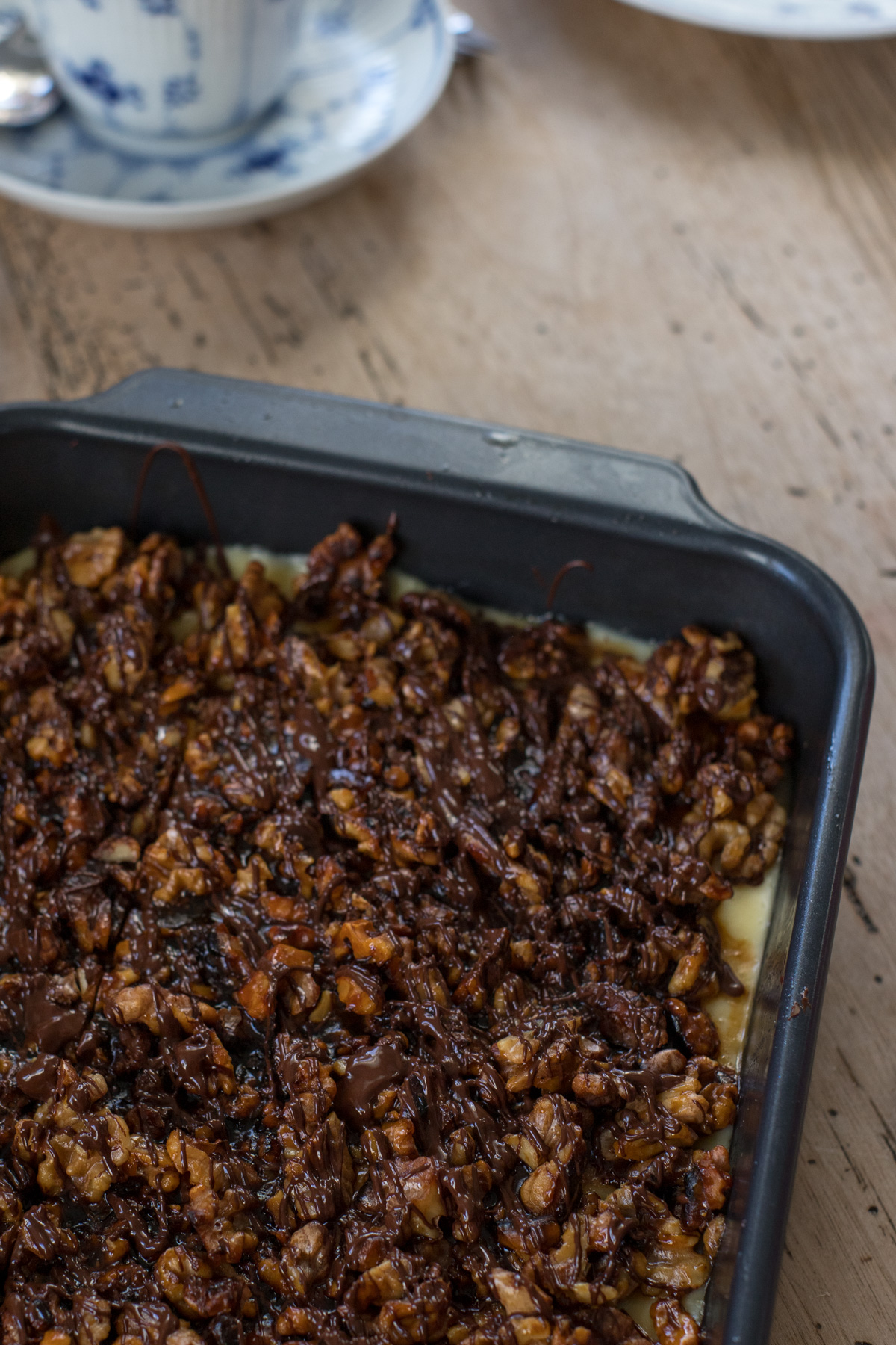 Saftiger Walnuss-Pudding-Kuchen mit Mürbeteig und Karamellnüssen – der Klassiker „Fress-mich-dumm-Kuchen“ neu interpretiert und unwiderstehlich lecker!